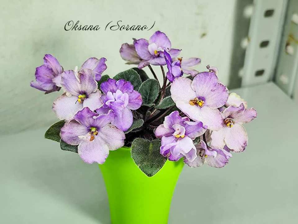 *** PRODUCT IS INTENDED FOR SALE ONLY IN THE TERRITORY OF UKRAINE *** Oksana (Sorano) Semiminiature. Semi-double large lavender flowers with a darker border at the tips of the upper petals. Dark green leaves.... Read more...